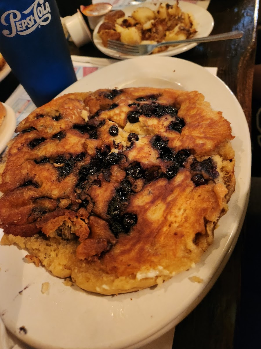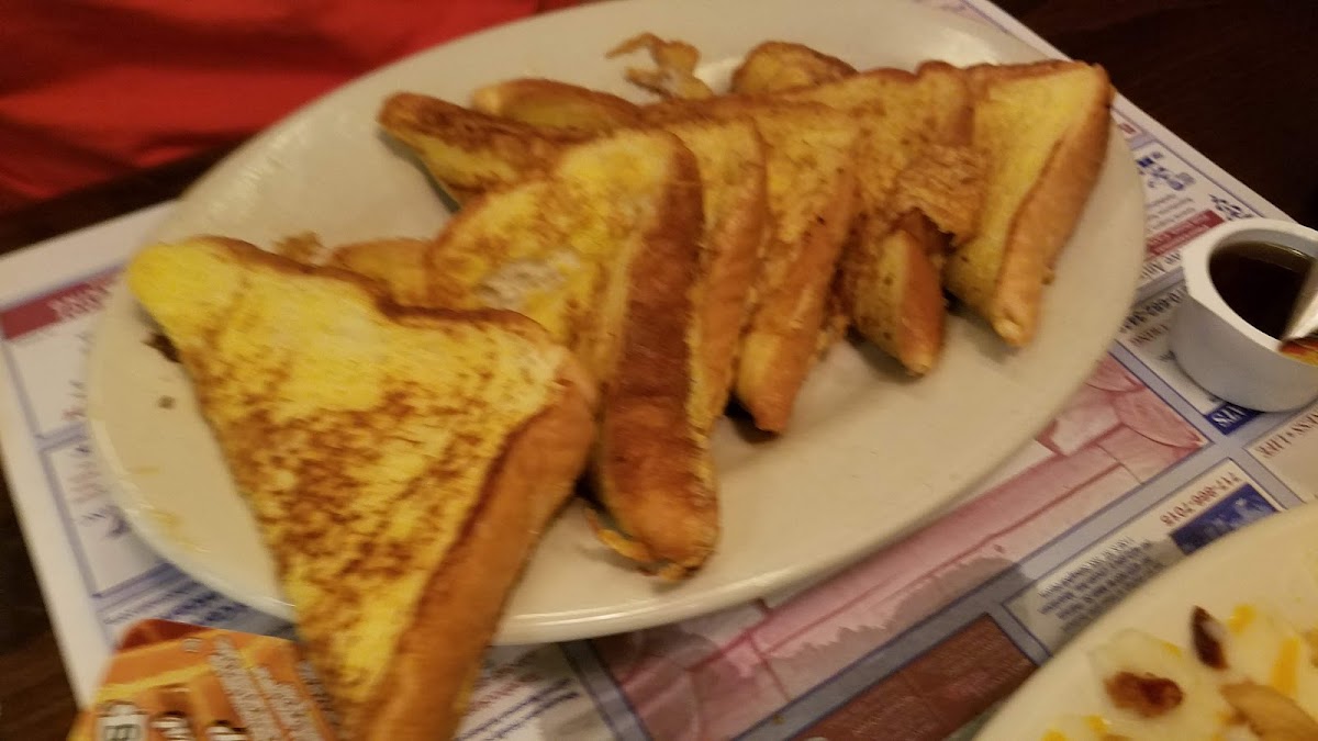 First time here won't be the last if you get the pancakes watch out You're going to be taking some home they're gigantic. Scrabble is the good kind they don't burn it to a crisp. Homemade white is perfect. Everything was wonderful